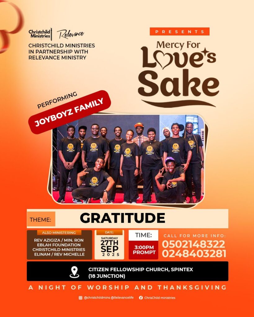 Don’t miss this powerful encounter with God’s love and mercy. Come with a heart ready to worship, and let’s lift our voices together in thanksgiving!
